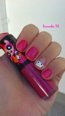 O rosa usado nos outros dedos é o Hot Friday da Hits, que eu adorei. A cobertura foi excelente, assim como a durabilidade e o brilho; a limpeza foi fácil. Ele tem um shimmer arroxeado que deixa a unha meio furta-cor. Não tenho nada à reclamar do Hot Friday, que faz parte da segunda leva da coleção das Meninas Superpoderosas lançada pela Hits. Nota 10.