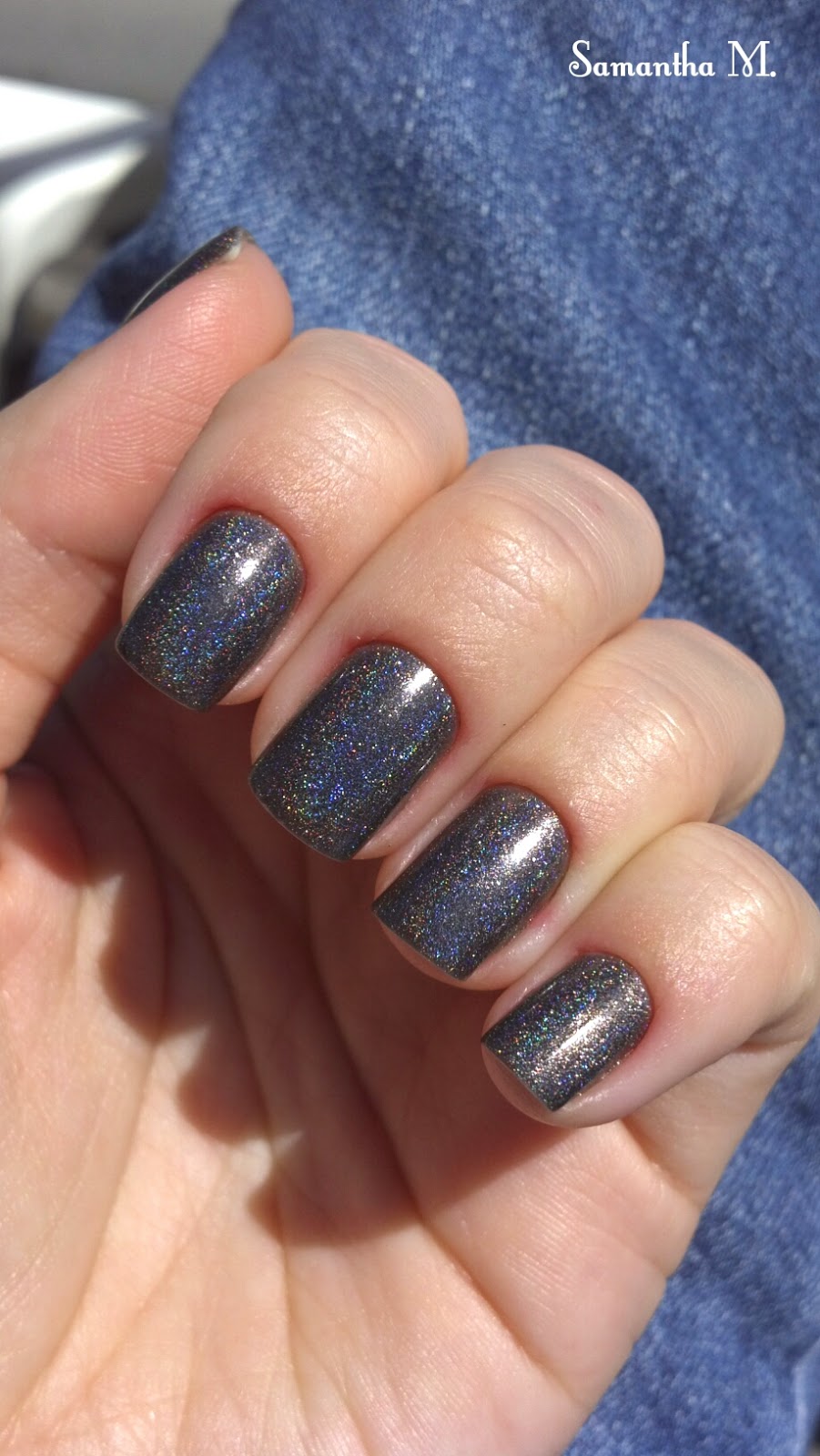 Tirei essas fotos sem a incidência direta da luz do sol só para vocês terem ideia do que é esse esmalte em um ambiente interno. Não sei se dá para ver, mas o efeito holográfico aparece bem levinho.