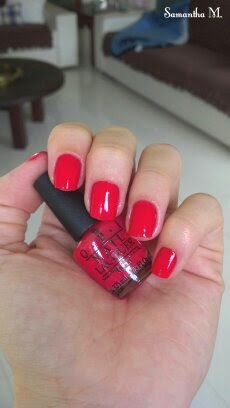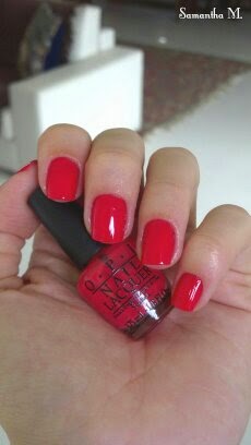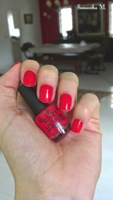 O dia aqui está bem nublado e acredito que por isso nas fotos a cor pareça menos intensa. Bom... a qualidade desse esmalte é maravilhosa! Duas camadas só por hábito, porque não são necessárias. Já falei que sou fã da O.P.I, mas como não ser quando tudo que ela faz é tão bom e lindo!?