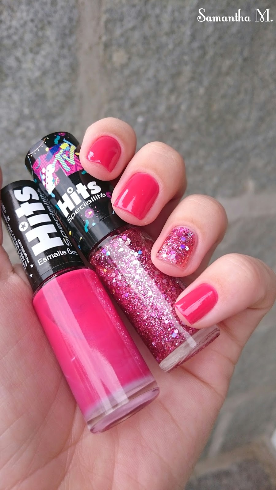 Enquanto isso, vamos falar de dois esmaltes lindos que eu usei no mês passado: o 324 e o Pink Pop da Hits.